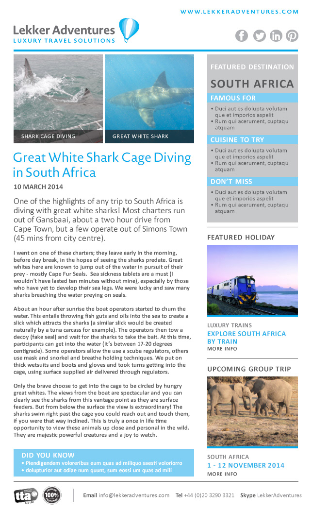 Lekker Adventures - Mailer